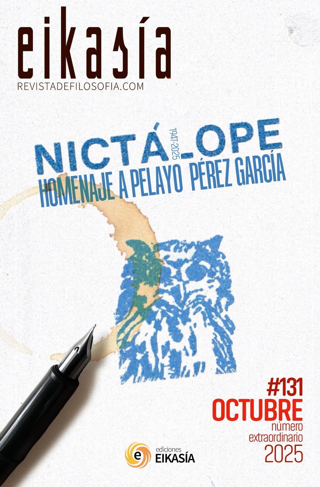 Eikasía, Revista de Filosofía va a publicar en papel una edición limitada del número monográfico dedicado a Pelayo Pérez García: Nictálope. Se trata del número 131 que incluye artículos inéditos, traducciones y colaboraciones de autores de prestigio. Un número que supone, también, la celebración de nuestro proyecto filosófico racionalista.